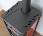 - Durch Rauchrohranschluss nach oben kann der Ofen platzsparend im Raum aufgestellt werden. In der Gussplatte ist ein 120 mm Rauchrohranschluss integriert.