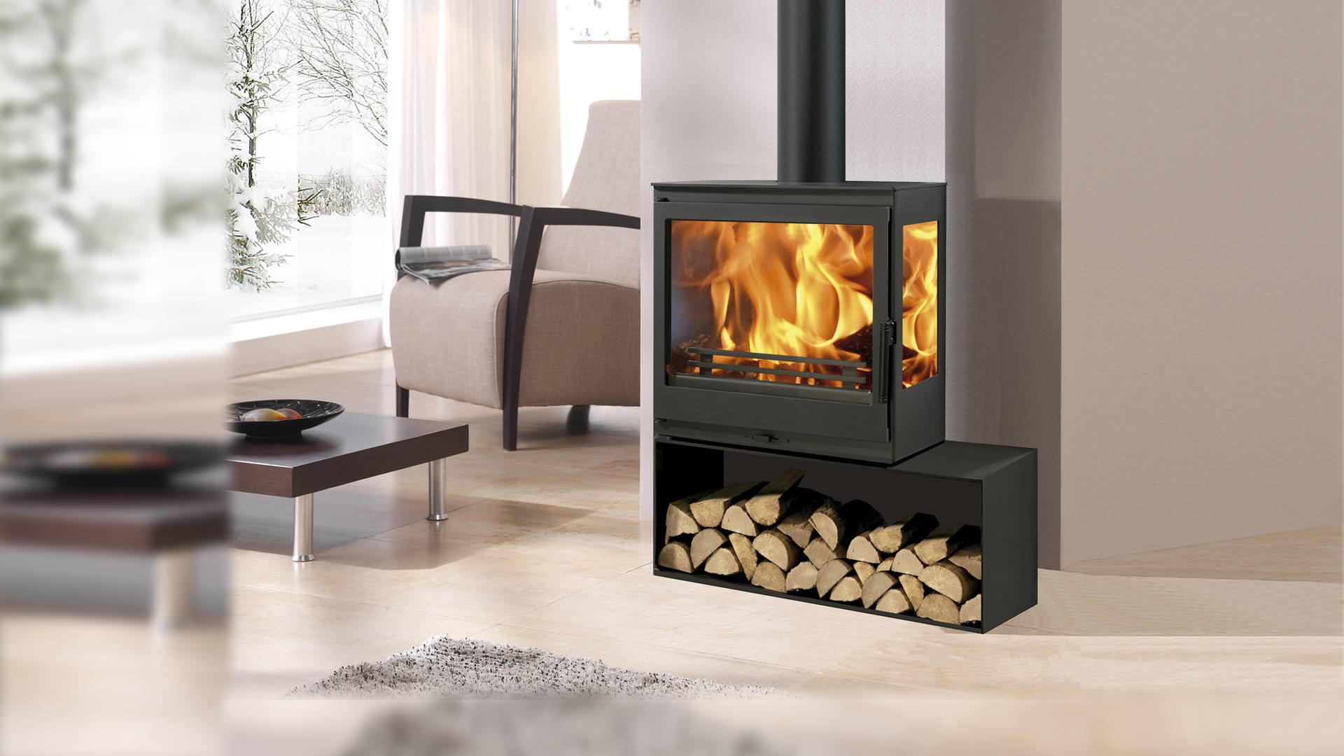 - moderner Kaminofen mit klarer, eleganter Form