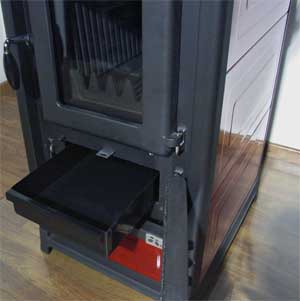 - großer komplett herausnehmbarer Aschenkasten (auf dem Bild ist nur das vordere Drittel des Kastens zu sehen)