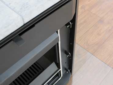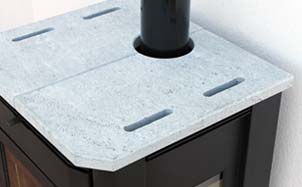 - Die Abdeckplatte aus Speckstein speichert Wärme und sorgt für ein besonders edles Erscheinungsbild.