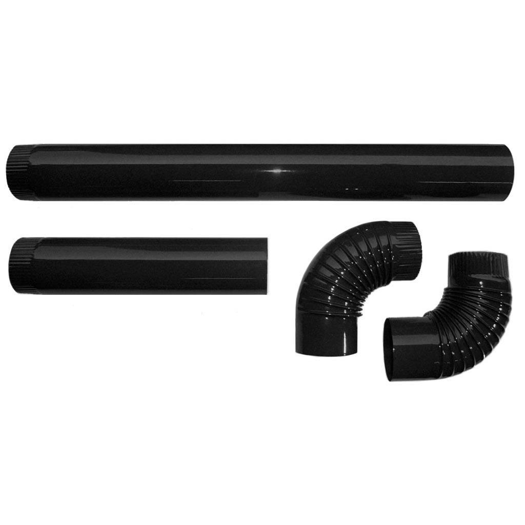Dieses vierteilige Ofenrohr-Set besteht aus einem 1m langen Rohr, einem 0,5m Rohr und zwei 90° Ofenrohr Bögen. Alle Teile sind hochwertig tiefschwarz emailliert.